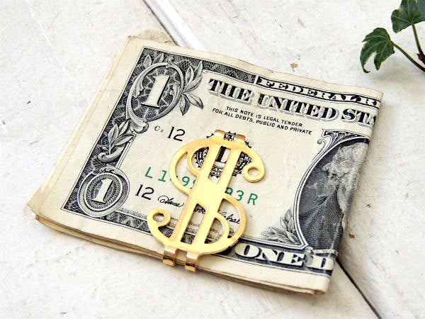 【ドル・$・モチーフ】ゴールドトーン・ヴィンテージ・マネークリップ・ファッション・アクセサリー