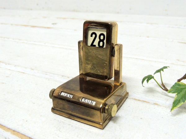 【ゴールドトーン】真鍮製・回転式・アンティーク・デスクカレンダー・卓上カレンダー ・里帰り品