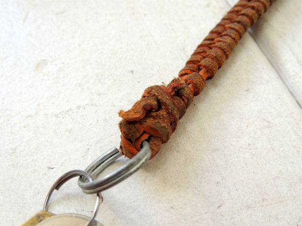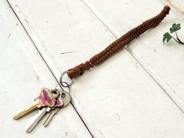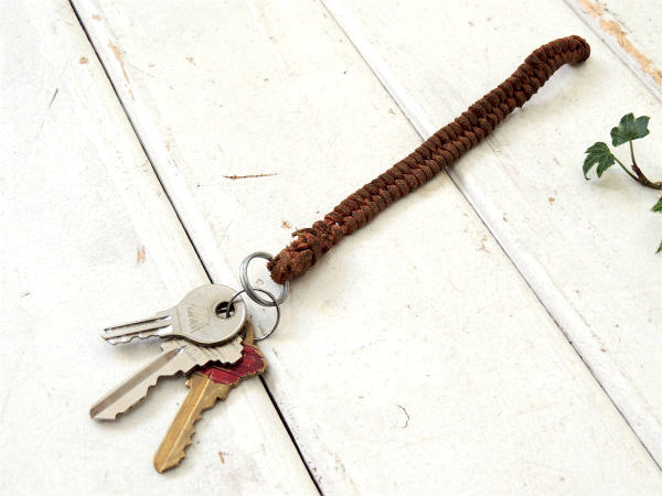 USA レザー・革 編み込み・ハンドクラフト・ヴィンテージ・キーホルダー 鍵 3本