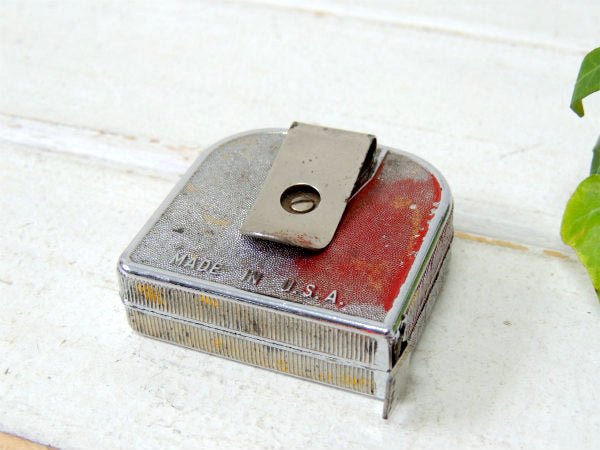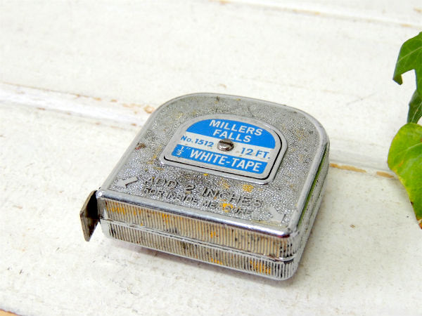 アメリカ西海岸・カリフォルニアでみつけました・・大工道具・ツール”MILLERS FALLS”工業系・シンプルデザインのヴィンテージ・メジャーテープ(巻尺) ベルトクリップ付きです。