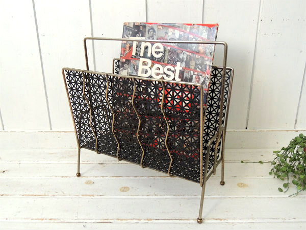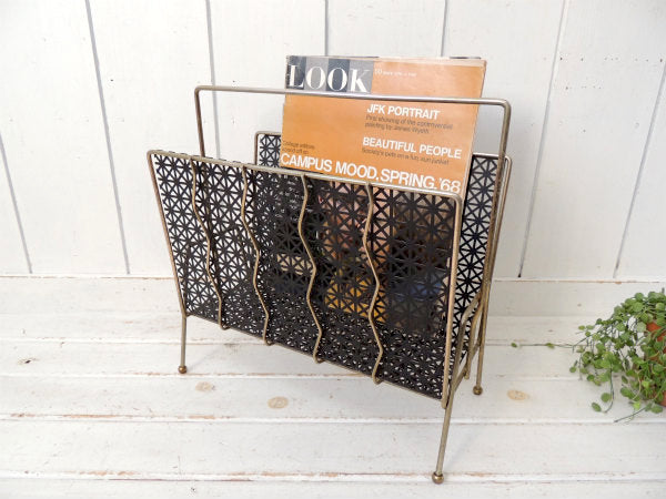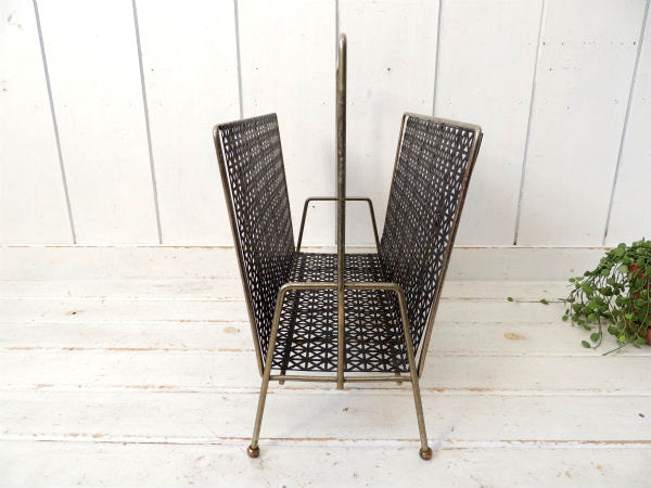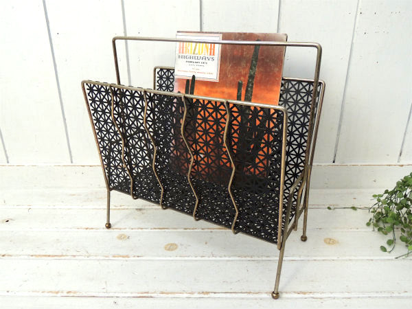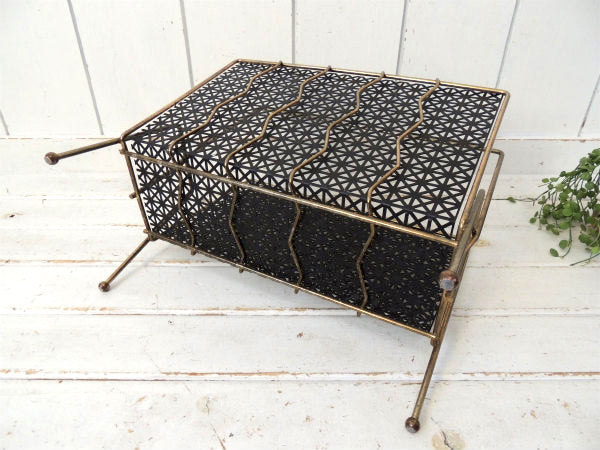 【ミッドセンチュリー】ブラック×ゴールド・ヴィンテージ・マガジンラック・レコードスタンド