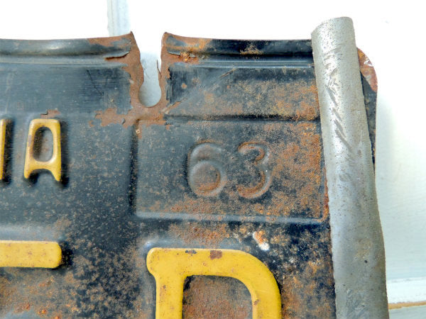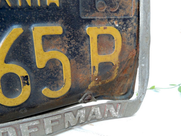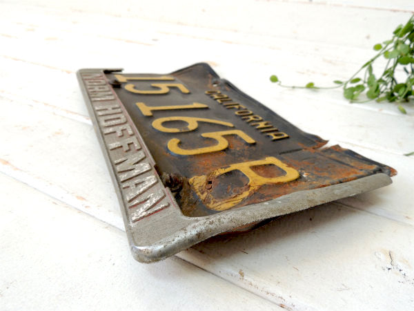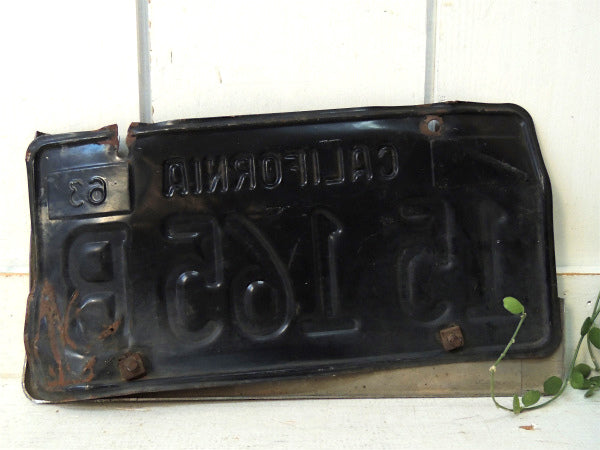 アメリカ西海岸・カリフォルニア ロサンゼルスで見つけました・・古き良きアメリカ1963年・"CALIFORNIA"ブラックカラー×イエロー ヴィンテージ・ナンバープレート/NORM HOFFMAN フレーム付き(オールド・マイナスネジ2個付き)です。