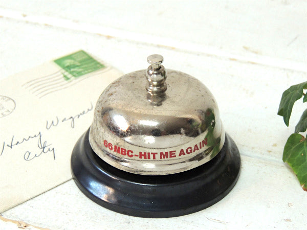 カリフォルニア州・サンフランシスコで見つけました・・”66 NBC-HIT ME AGAIN”メタル製・シャビーなアドバタイジング・ヴィンテージ・卓上コールベル(呼び鈴)です。