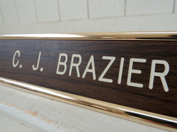 アメリカ西海岸・カリフォルニアで見つけました・・ウッド柄・ヴィンテージ・卓上”C.J. BRAZIER”ネームプレート・サイン(スタンド・看板・席札)です。