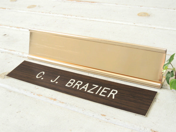【C.J. BRAZIER】ヴィンテージ・卓上・ネームプレート・席札・ウッド柄・ゴールドトーン・US