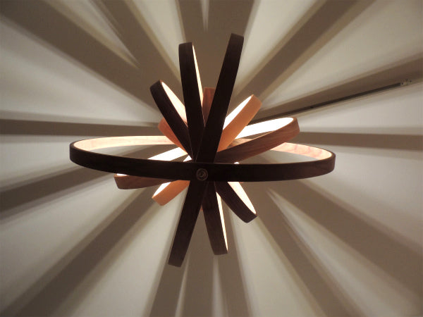 木材の種類により木本来の色味が違いますので、シェードの形(フープ)を自由自在に変えて色味もお楽しみいただけます。
