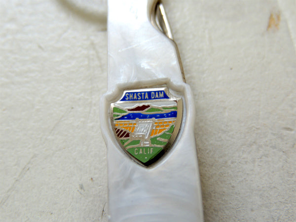 アメリカ西海岸・サンフランシスコでみつけました・・"SHASTA DAM CALIF”カリフォルニア・ポケットナイフ付き・ヴィンテージ・デッドストック・キーホルダーです。 USAの刻印あり 1960~1970年代頃 キーホルダーにポータブル・ナイフや栓抜き・マイナスドライバーetcが付いています。 SHASTA DAM:シャスタダム 1945年〜米国・カリフォルニア州・北部に位置するサクラメントにある(貯水池・ダム) お持ちの愛車鍵などを取り付けてキーホルダーとしてはもちろん・・アクセサリーパーツ・・アウトドアやキャンプ・ガレージのディスプレイ/特別な人へのプレゼント・・・♪ 美品・デッドストック未使用品ですが、経年での多少のホコリ等あります。 画像(写真)での判断を宜しくお願いします。 ■size :約 W1.8cm×D1.0×H6.5cm(ホワイト部分)       ■コンディション : ★★★★☆ (デッドストック・未使用) ■レターパックライト¥370対応可(追跡サービスあり・補償なし) ※ご注文の際、お手数ですがメッセージ欄に『レターパックライト希望』とご記入下さい。新たにお見積もりをメールにてお知らせさせていただきます。
