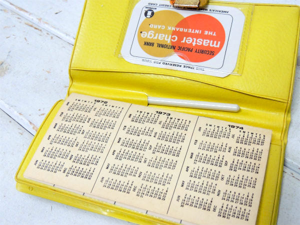 アメリカ西海岸・サンフランシスコで見つけました・・『Dart Manufacturing CO.』のビニール製・キノコ柄・デッドストック・ヴィンテージ・ウォレット(長財布)です。 1970年代頃 レトロ可愛いキノコ柄の2つ折りタイプのお財布で、留め金具&外ポケット(小銭入れ)が付いています。 内側はイエロー色で、クリアのカードホルダー7枚、小切手などを仕分けするホルダー、お札入れなどの収納箇所がございます。 1972年・1973年・1974年のカレンダー&ボールペン(使用不可)が付いています。 内側に【DART MFG CO. DALLAS, TEX. / U.S. PAT. NO. D-216173】とございます。 お財布やカードケースとして古着ファッションアイテムに♪ デッドストック未使用品ですが、経年により金具にサビ等ございます。 ※付属のボールペンは経年により使用できません。 画像(写真)でのご判断を宜しくお願い致します。 ■SIZE :約 W17.6cm×W9㎝×D3.7㎝  ■コンディション : ★★★★☆ ■レターパックプラス¥510対応可(追跡サービスあり・補償なし) ※ご注文の際、お手数ですがメッセージ欄に『レターパックプラス希望』とご記入下さい。新たにお見積もりをメールにてお知らせさせていただきます。