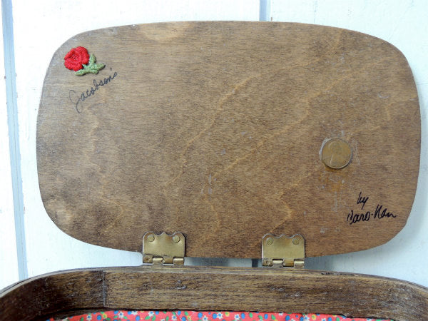蓋内側の右上にオーダー主名【Jacobson】&お花の刺繍飾り、右下に【by Caro-nan】のサイン、製造年を表す1974年のラッキーペニーが付いております。