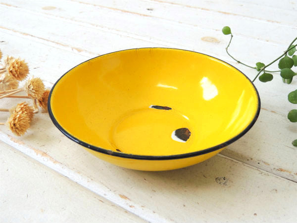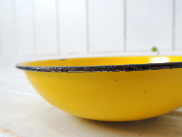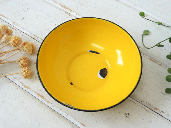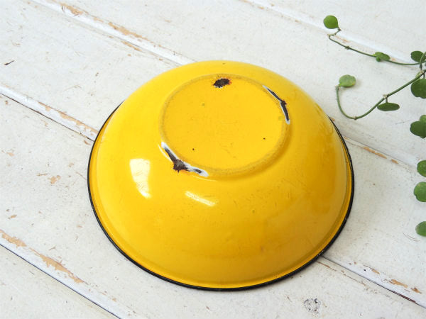 【イエロー】アンティーク・ホーローボウル・琺瑯・キッチン雑貨 USA