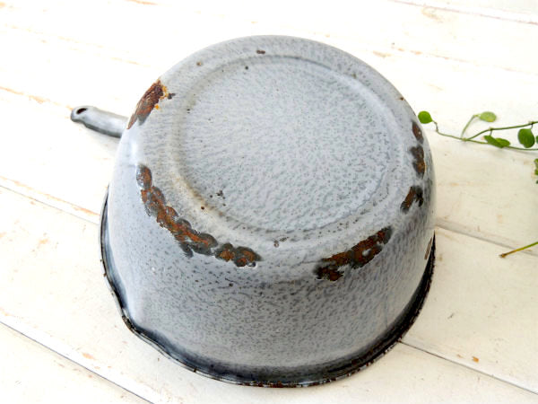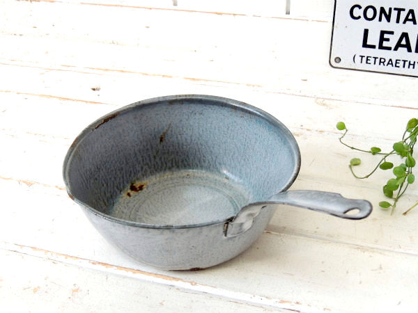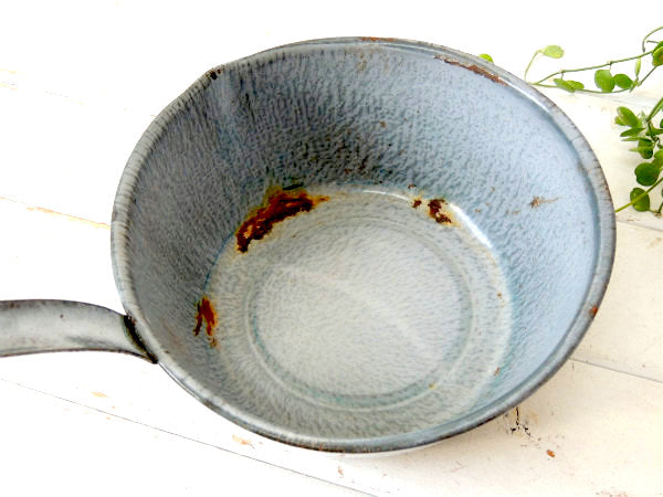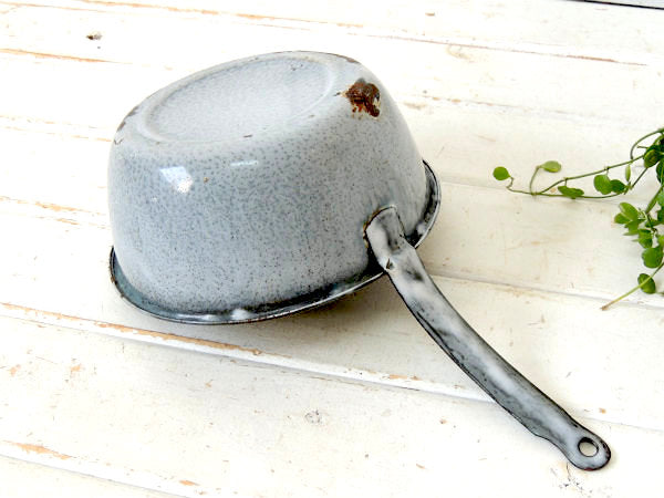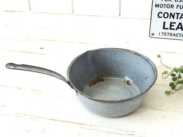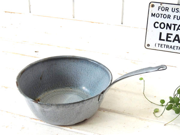 アメリカ南部・テキサス州郊外で見つけました・・アンティーク・ホーロー製・片手鍋(キッチン用品)です。
