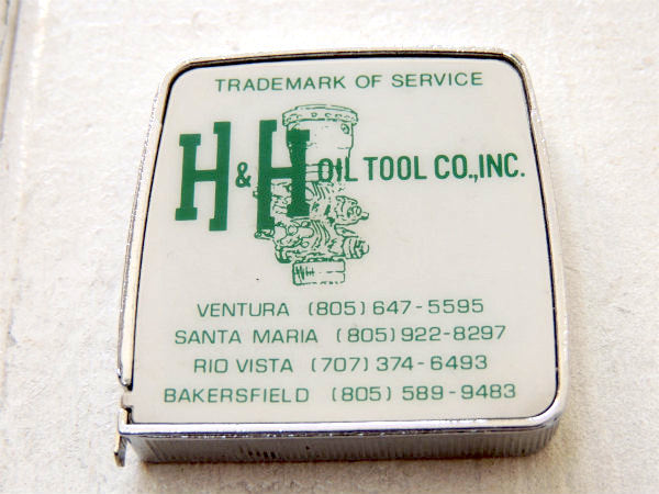 アメリカ西海岸・カリフォルニアでみつけました・・モーター系・アドバタイジング"H&H OIL TOOL CO.,INC"オイル・オートパーツ・クールなエンジン・デザイン・ヴィンテージ・メジャーテープ(巻尺)です。