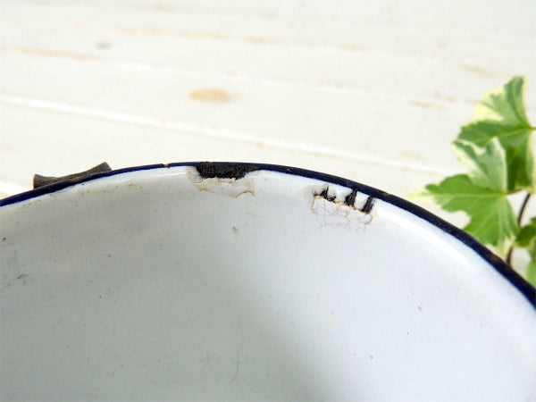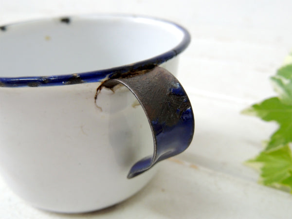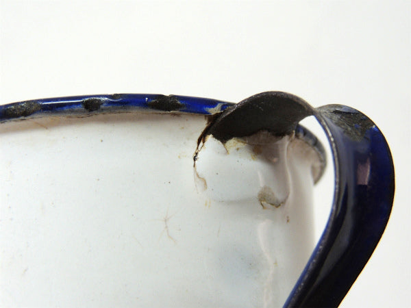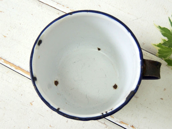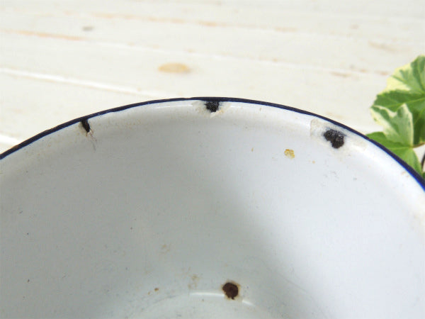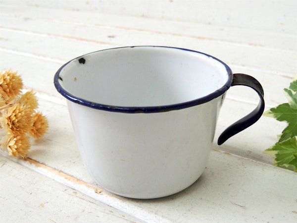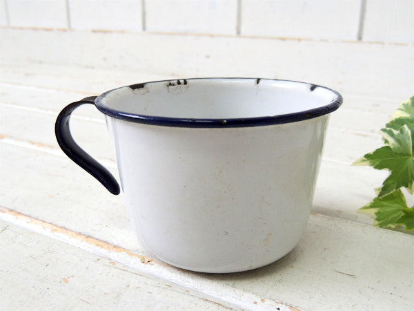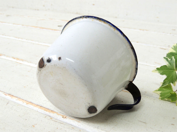 【ホワイト×ネイビー】ホーロー製・アンティーク・カップ・ホーローコップ・琺瑯・エナメルウェア USA