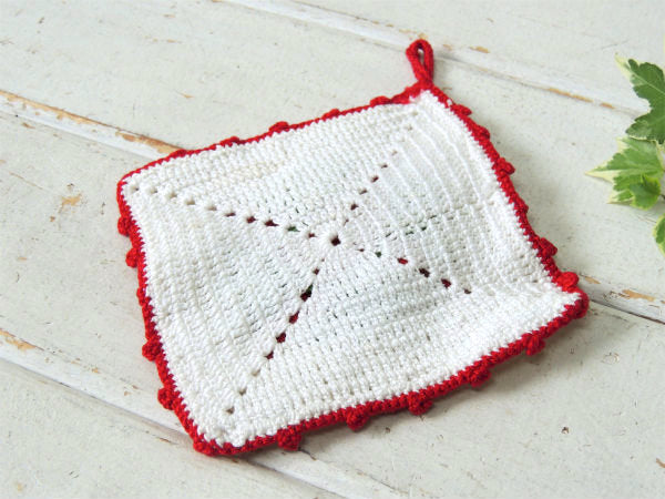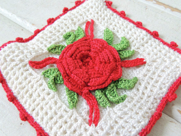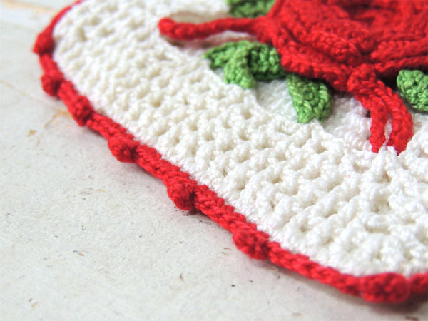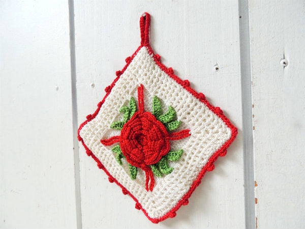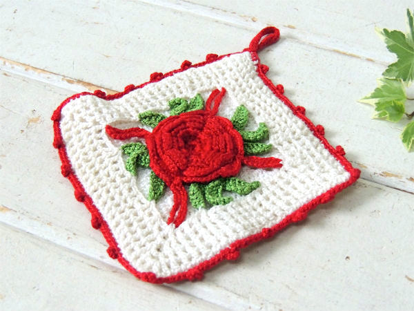 アメリカ・薔薇モチーフ・クロッシェ・手編み・ヴィンテージ・ポットホルダー・コースター・キッチン用品