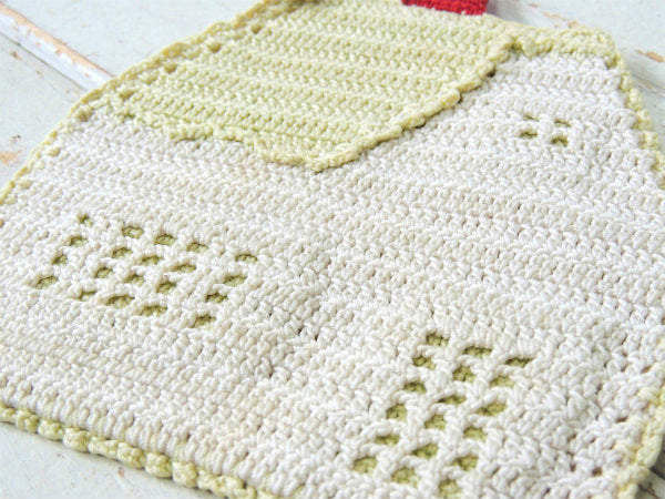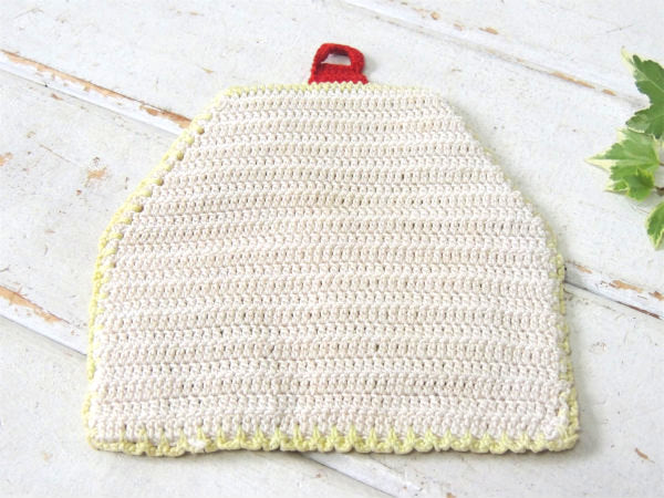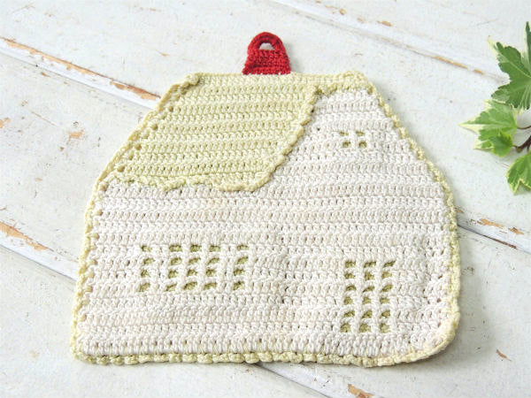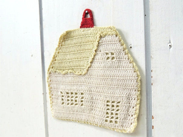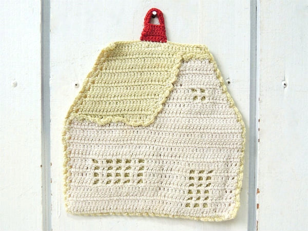アメリカ西海岸・サンフランシスコの田舎町で見つけました・・クロッシェ編みの家モチーフ・ヴィンテージ・ポットホルダーです。