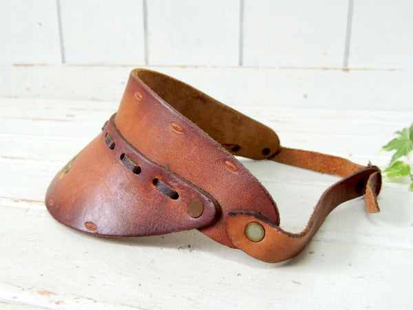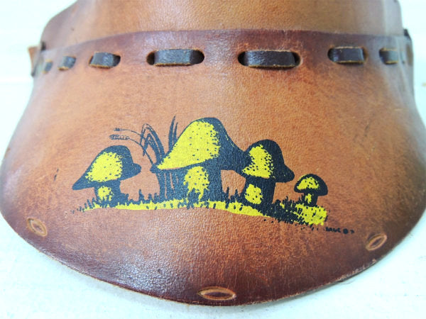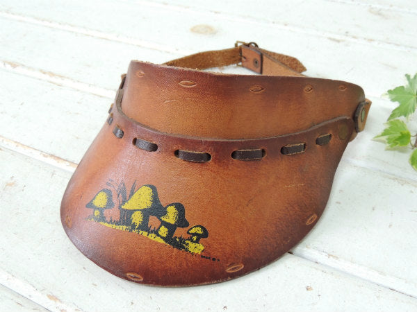 【キノコ・きのこ柄】ヒッピー・1960~1970s・レザー製・ヴィンテージ・サンバイザー・帽子