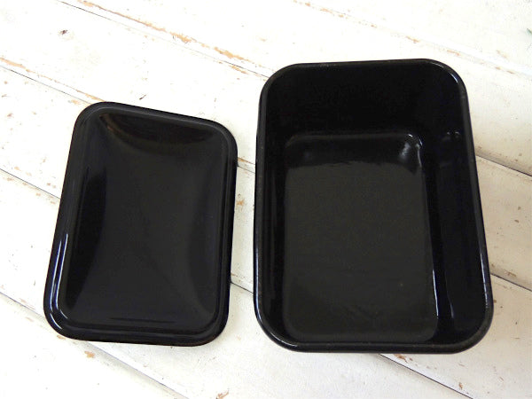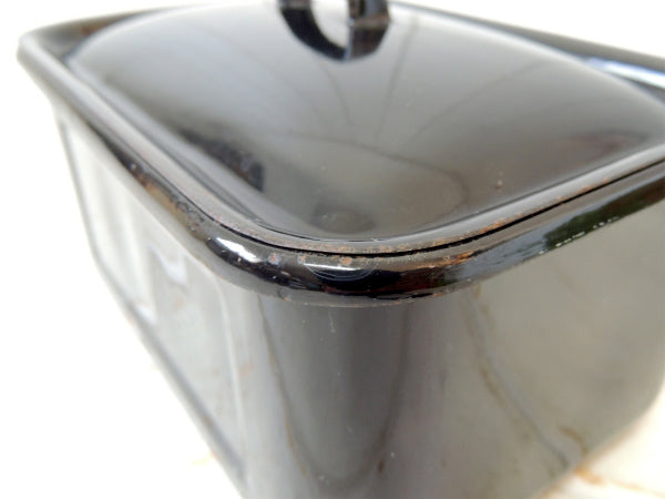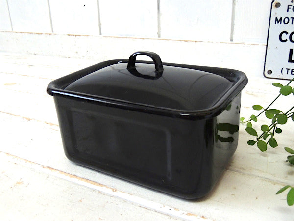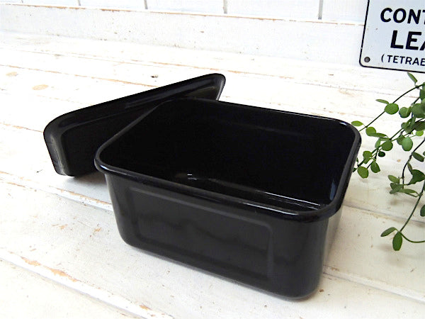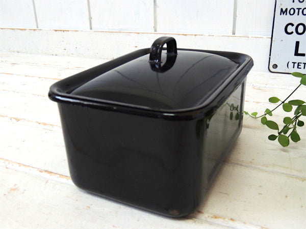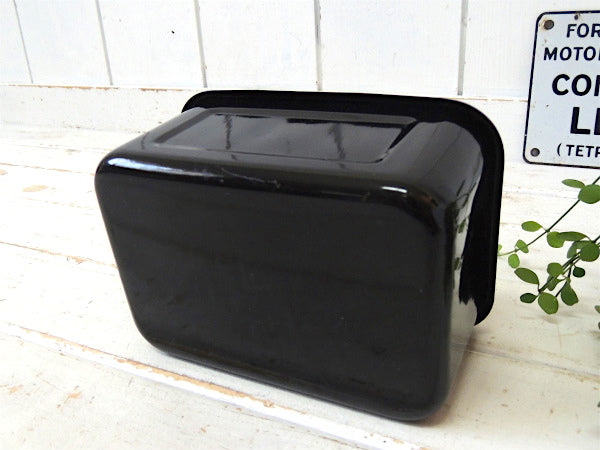 アメリカ西海岸・サンフランシスコで見つけました・・ツヤのあるブラックカラーの長方形・ホーロー製・ヴィンテージ・キッチンポット(キャニスター)です。
