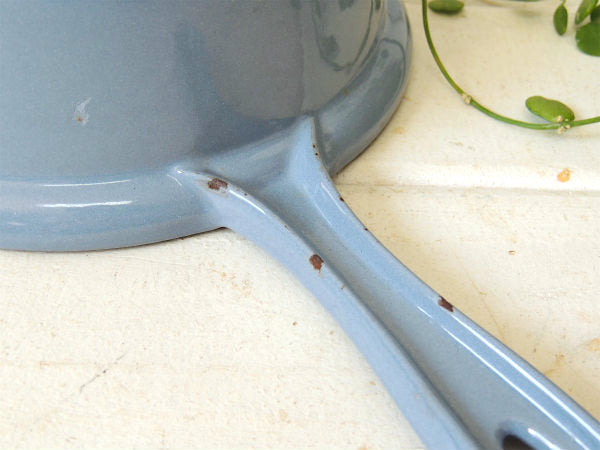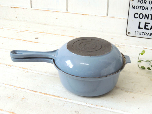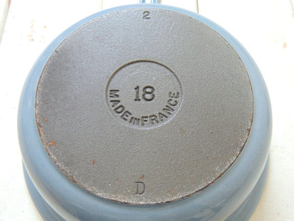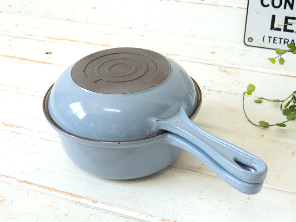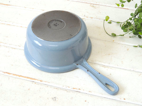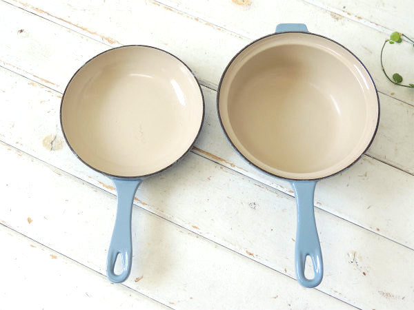 フランス製・鋳物ホーロー・ライトブルー・ヴィンテージ・ソースパン&スキレット・調理器具・18㎝