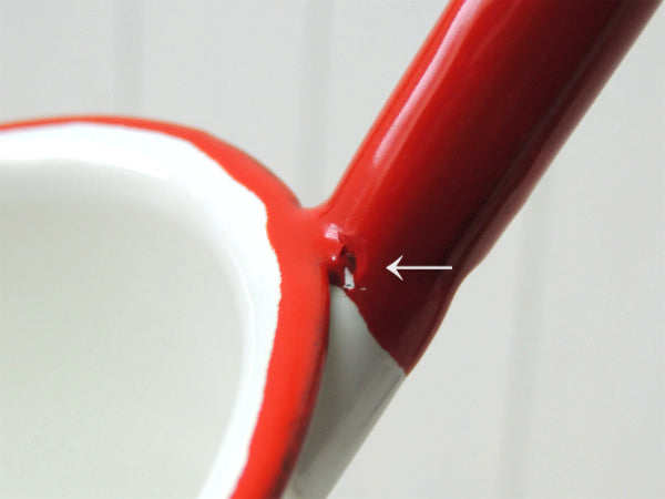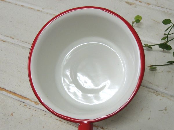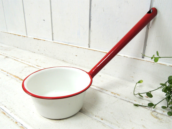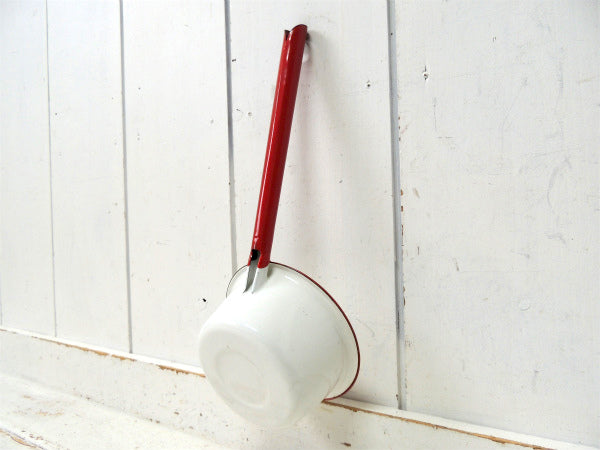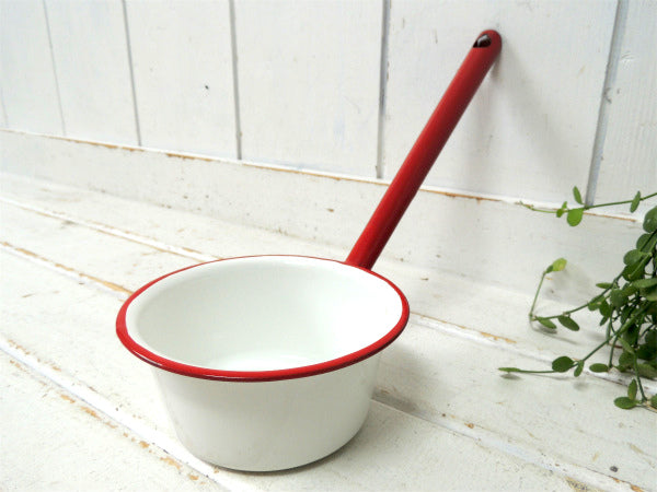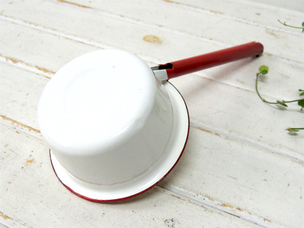 ホワイト×レッド・ホーロー製・アンティーク・ミルクパン・ソースパン・片手鍋・エナメルウェア・キッチン
