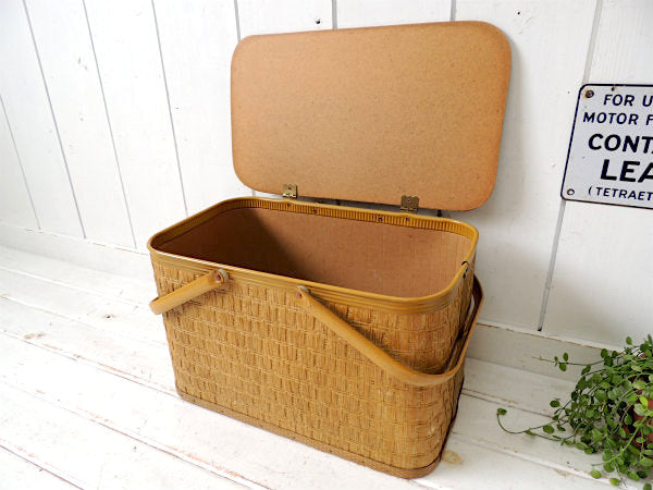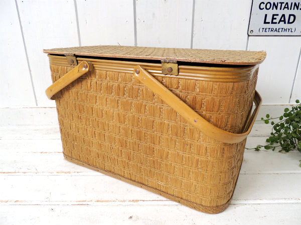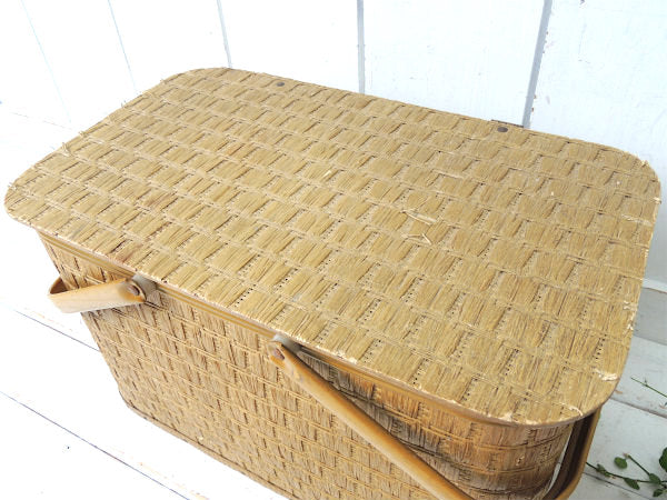 【Redmon・レドモンド】ヴィンテージ・ピクニックバスケット・ハンドル付き・アウトドア&キャンプ