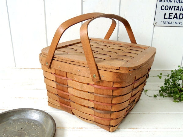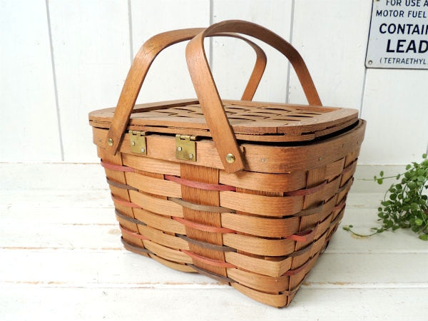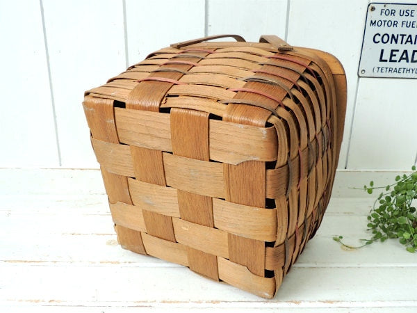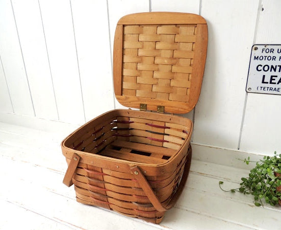 USA ナチュラル・木製・2段式・ヴィンテージ・パイバスケット・バスケット・カゴ ピクニック