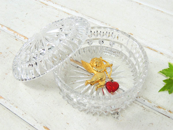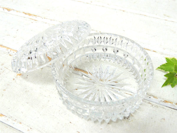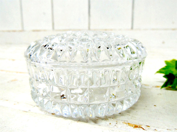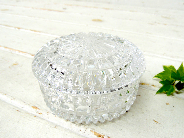USA・キラキラ輝く素敵なガラス製・ヴィンテージ・キャンディーポット・蓋付き・宝石箱