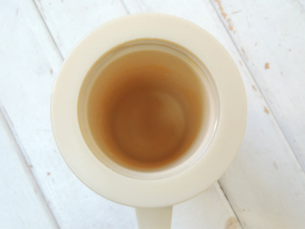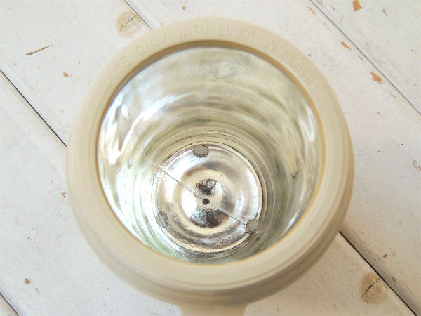 サイズは1パイント(473ml)、本体と内側容器はクリーム色プラスティック製、内側は鏡面加工ガラスです。
