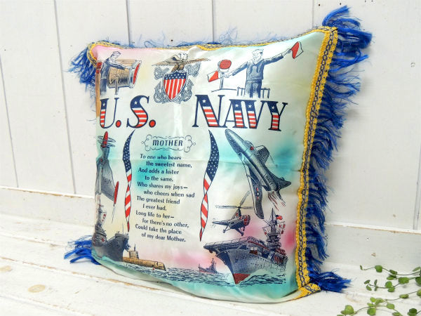 【US NAVY】アメリカ海軍・WWII・スーベニア品・ヴィンテージ・クッションカバー・ピロケース