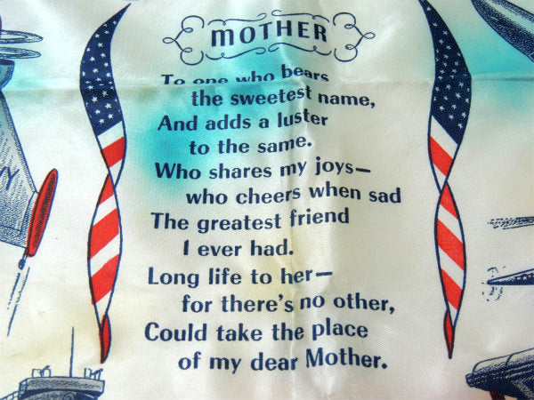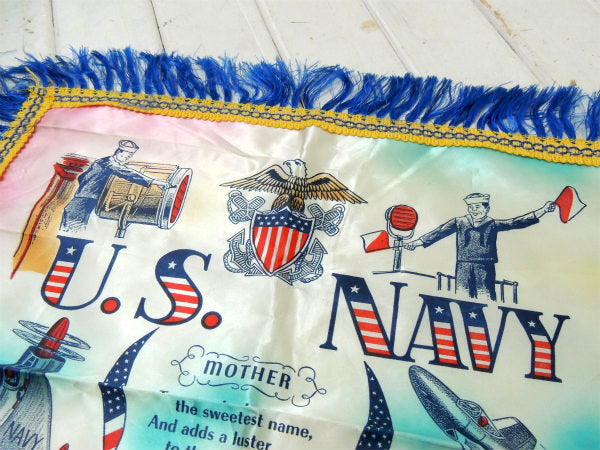 ホワイトのサテン生地に、【U.S. NAVY】&【MOTHER】へのメッセージ、作業をしている水兵や戦闘機・海軍艦艇などのプリントが入っております。