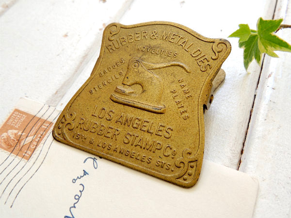 アメリカ西海岸・サンフランシスコで見つけました・・『LOS ANGELES RUBBER STAMP COMPANY・ロサンゼルス・スタンプカンパニー』のノベルティ(販促品)・アンティーク・OLDクリップです。