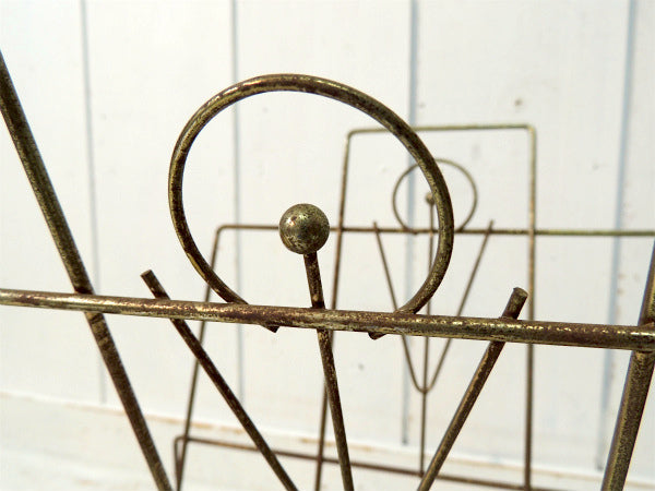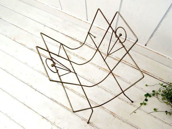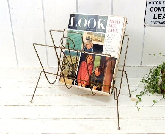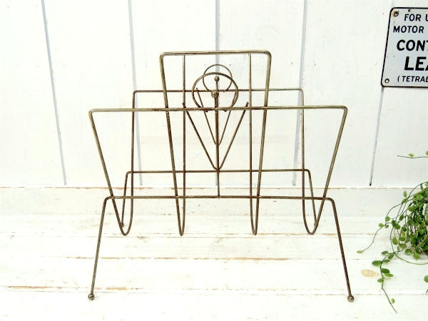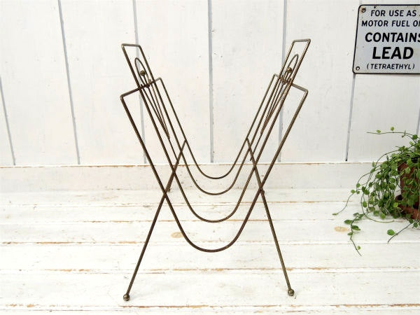 【ミッドセンチュリー】ゴールドトーン・メタル製・ヴィンテージ・マガジンラック・スタンド・インテリア
