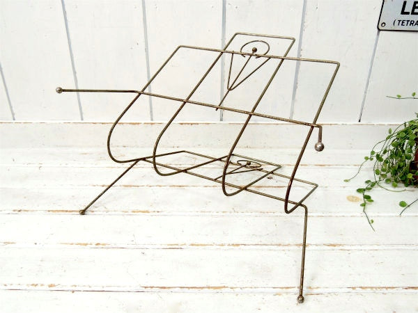 アメリカ西海岸・サンフランシスコで見つけました・・ゴールドトーン・スペーシー・メタル製・ヴィンテージ・マガジンラック(マガジンスタンド)です。
