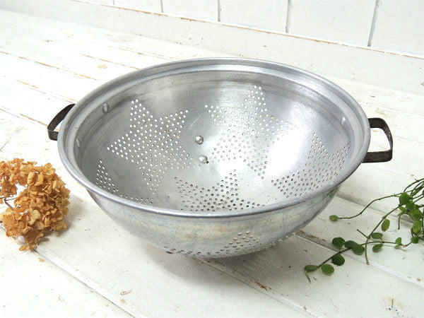 アメリカ西海岸・サンフランシスコで見つけました・・大きめサイズの★星模様・アルミ製・ヴィンテージ・コランダー(水切りボウル)です。