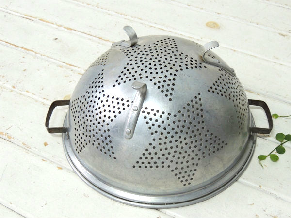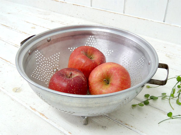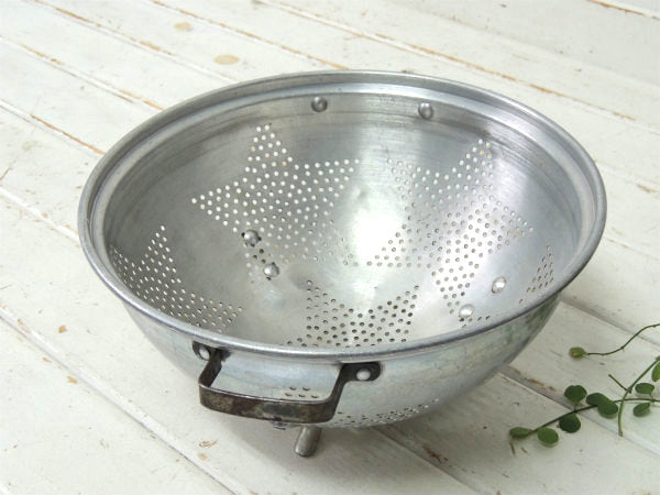 【星モチーフ】アルミ製・ハンドル&脚付き・ヴィンテージ・コランダー・水切りボウル・キッチン用品