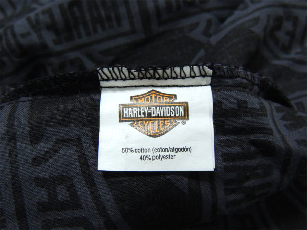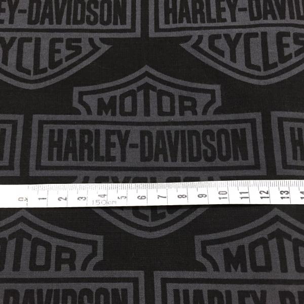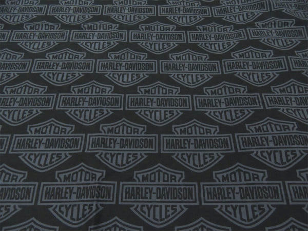 ブラックベース×グレー色の、ハーレーダビッドソン・ロゴ【HARLEY-DAVIDSON MOTOR CYCLES】のシックな総柄プリントです。