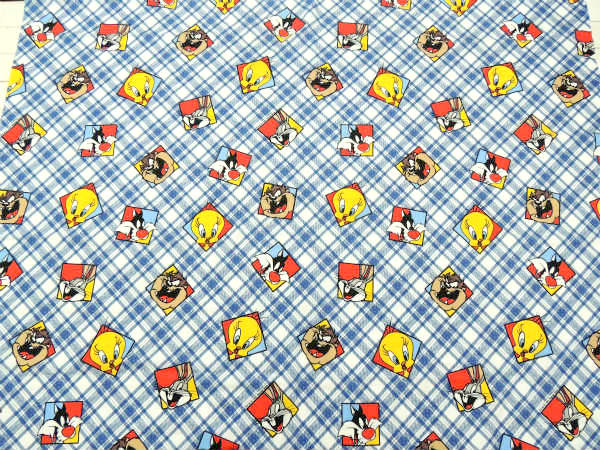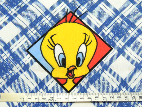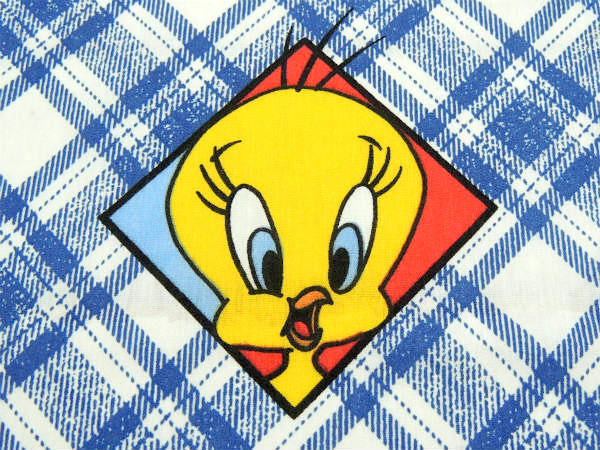 【ルーニーテューンズ】トゥイーティー・斜めチェック×パネル柄・ユーズドシーツ(フラットシーツ)