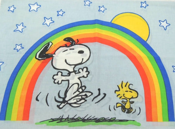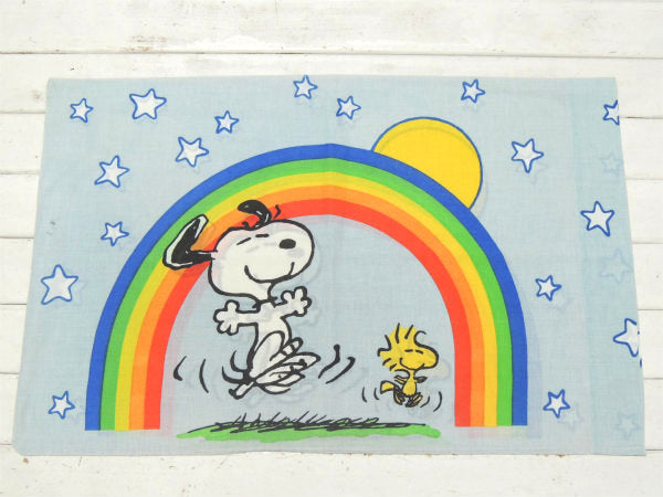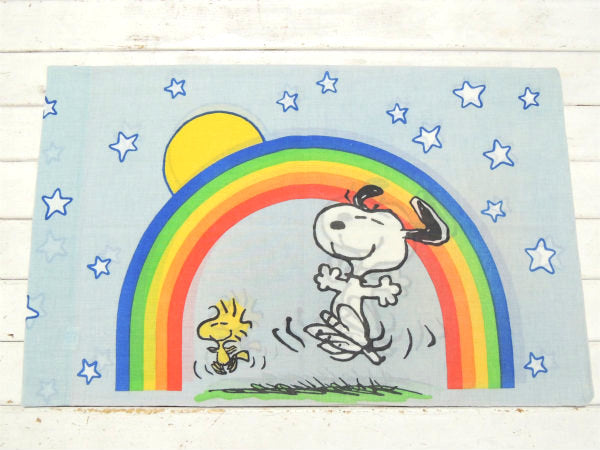 【スヌーピー&ウッドストック】星&レインボー柄・60'sヴィンテージ・ピロケース・枕カバー USA