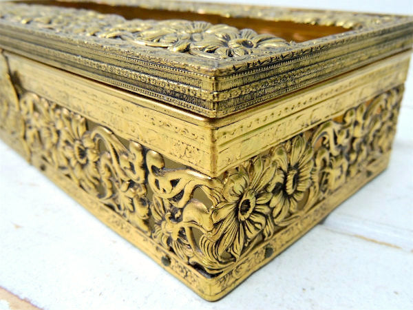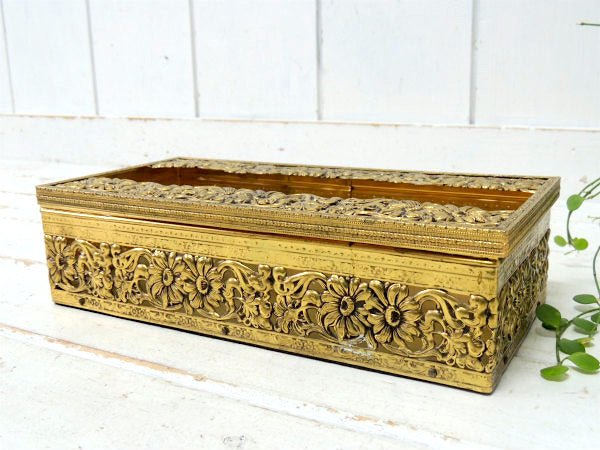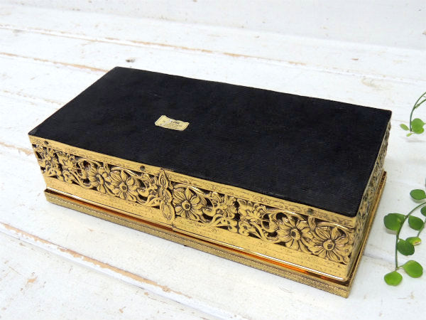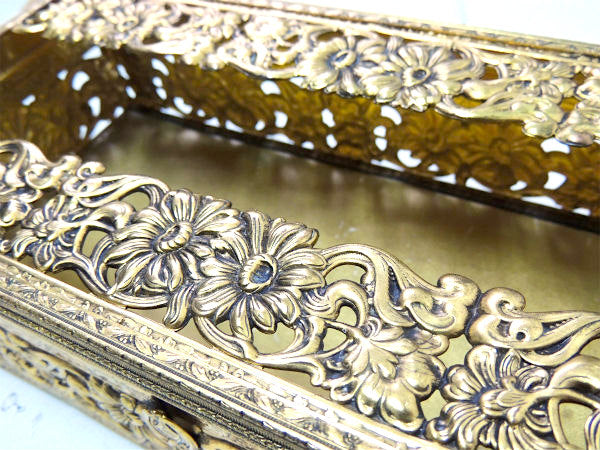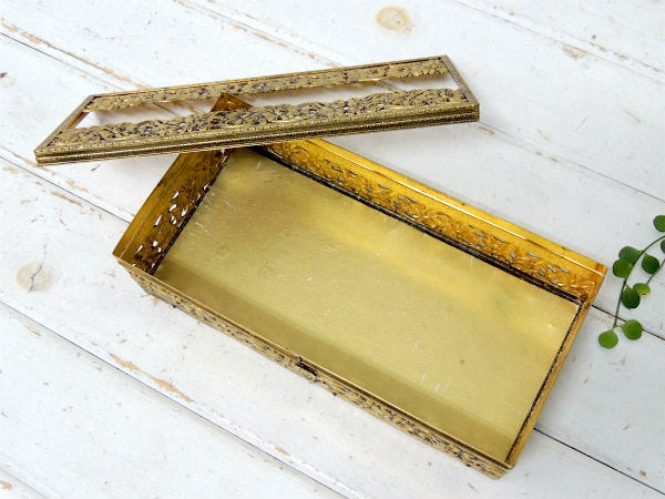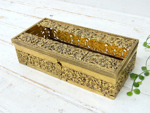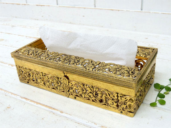 【GLOBE】24金 ゴールドプレート・花柄・透かしデザイン・アンティーク・ティッシュケース USA