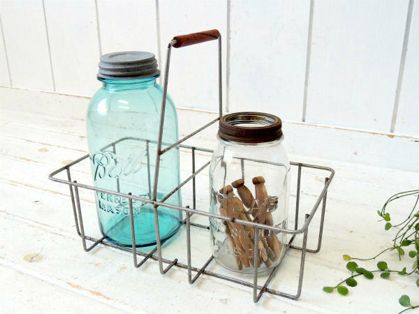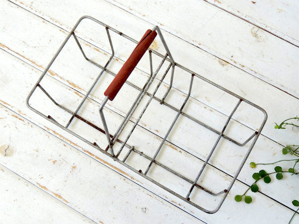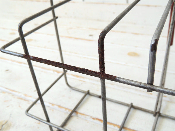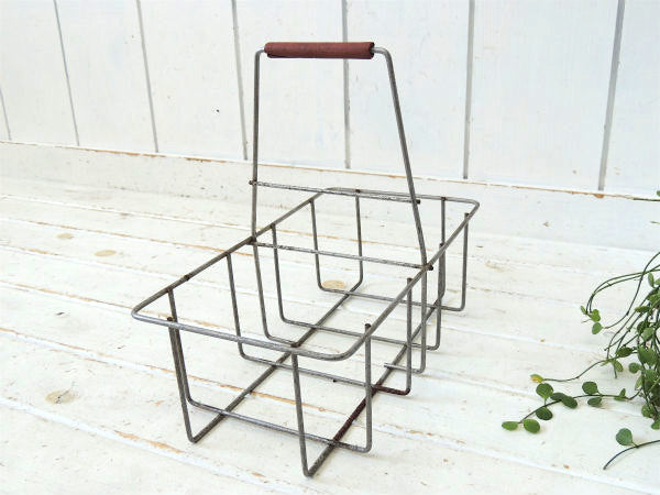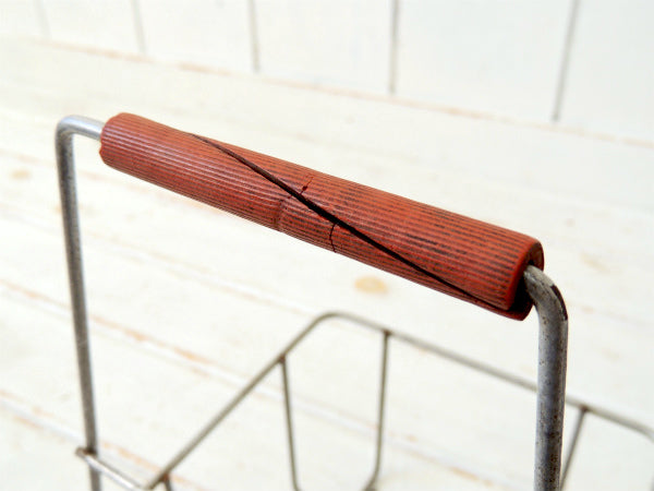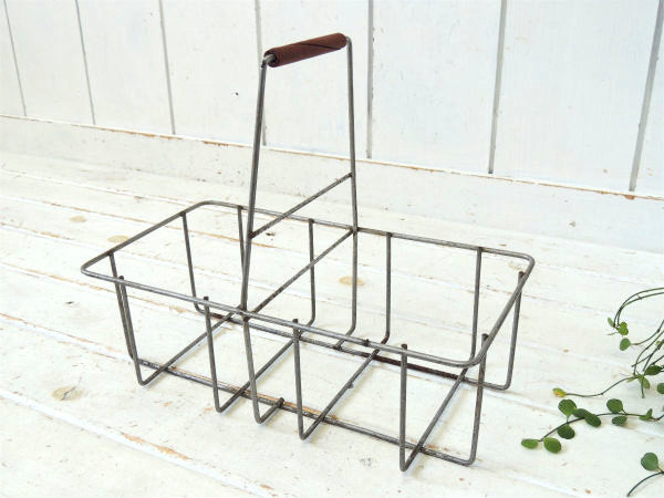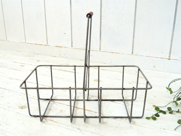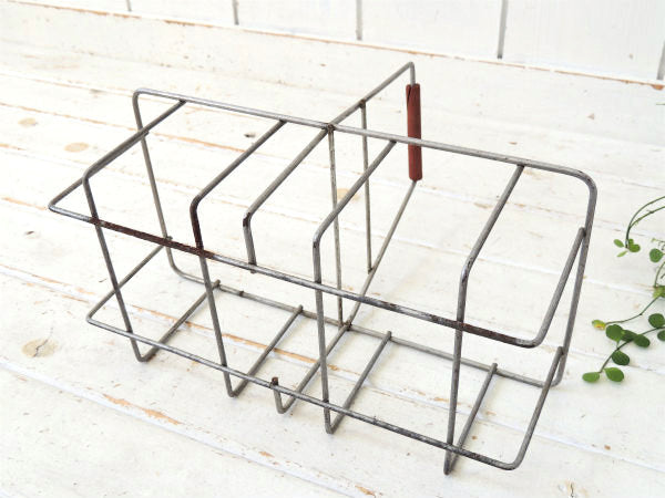ハンドル&仕切り付き・シャビーなヴィンテージ・ワイヤーバスケット・カゴ・かご USA
