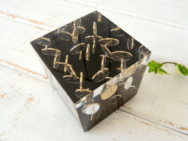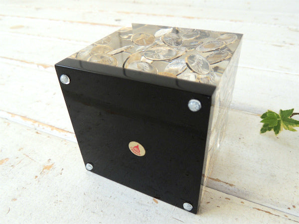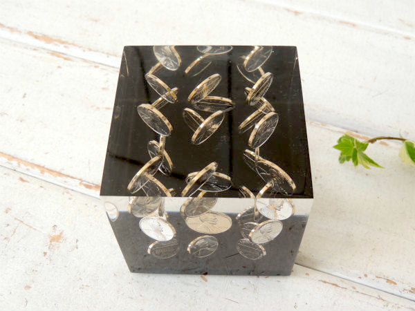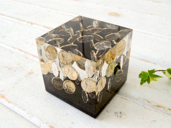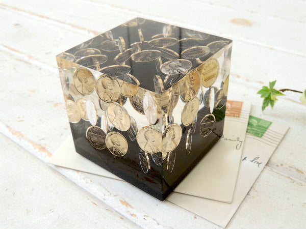 【1セント】1974年ペニー入り・キューブ型・樹脂製・ヴィンテージ・ペーパーウェイト・文鎮