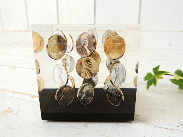キューブ型のクリア樹脂の中に1セント(コイン)が27枚埋め込まれた、アート感たっぷりのクールなデザインです。