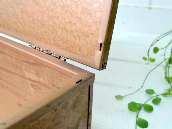 ノスタルジック・ハンマードフィニッシュ・銅板製・アンティーク・ウッドボックス・収納ケース・木箱