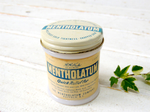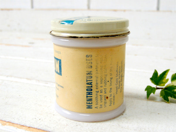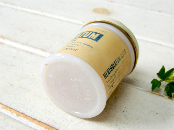 メンソレータム ヴィンテージ ミルクガラスジャー 薬瓶 ガラス容器 USA NY エンボス 薬局