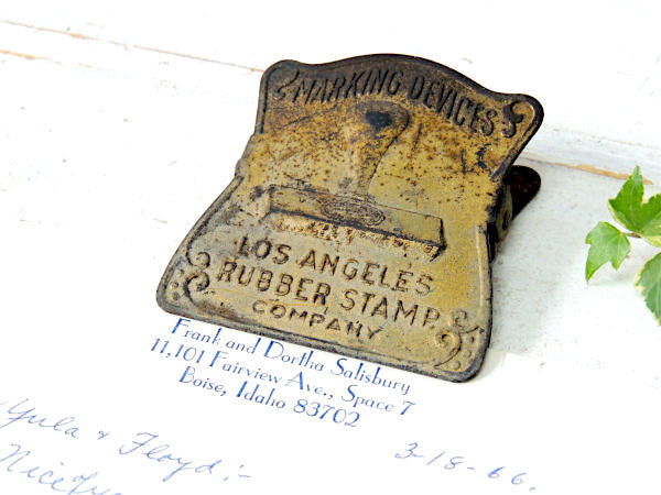 アメリカ西海岸・カリフォルニア・サンタモニカで見つけました・・『LOS ANGELES RUBBER STAMP CO』のノベルティ(販促品)・アンティーク・OLDクリップです。