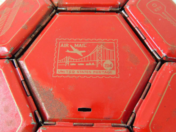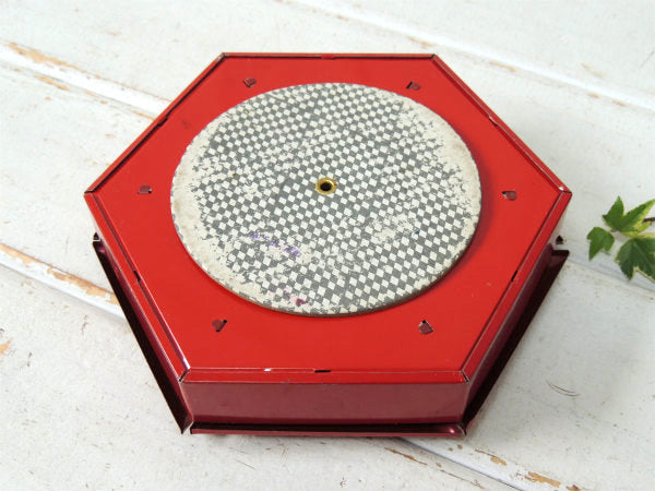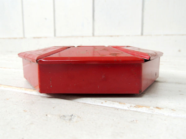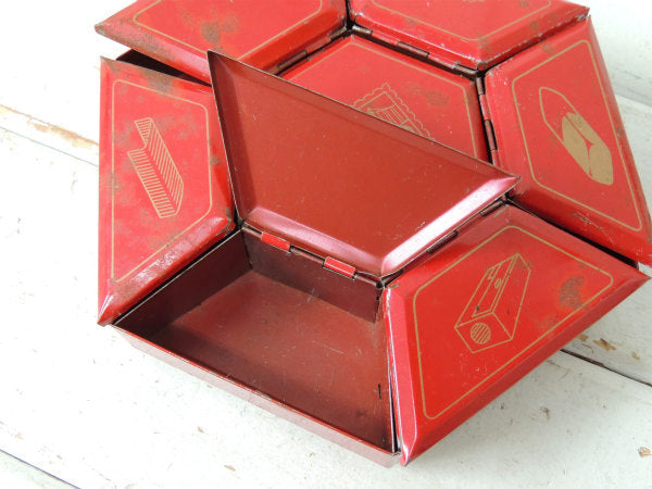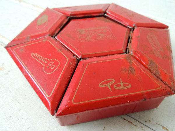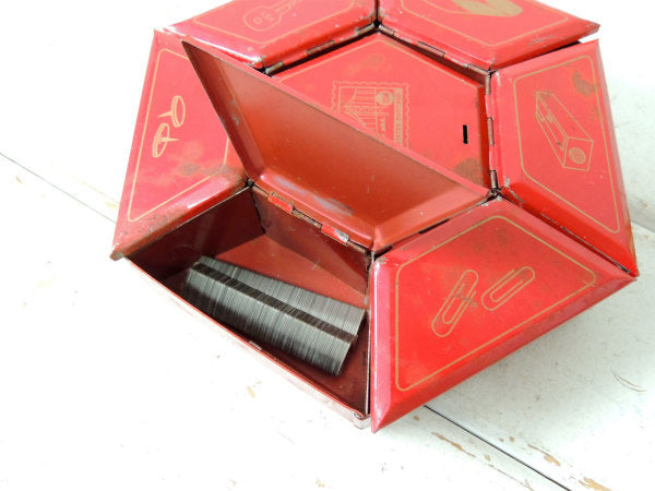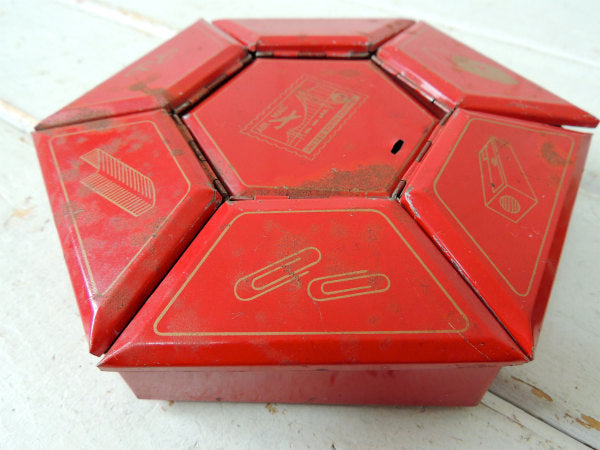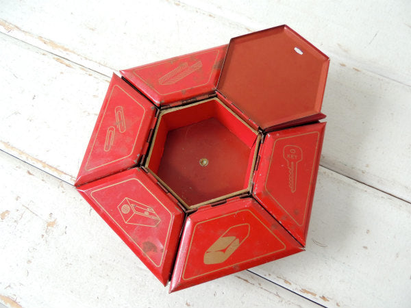 アメリカ西海岸・サンフランシスコで見つけました・・ステーショナリー小物を収納する卓上・回転式・6角形・赤色ブリキ製・ヴィンテージ・オーガナイザーケースです。