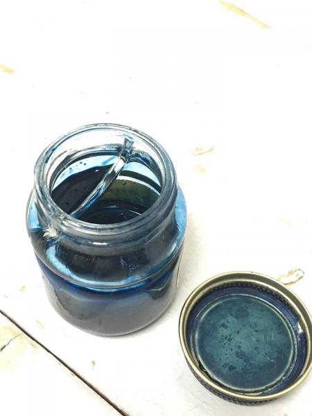 ガラスの内側の上部分に小さな仕切りがあり、フタを閉めた状態でボトルを逆さまにすると、小さな仕切り部分にインクが溜まる優れモノです。