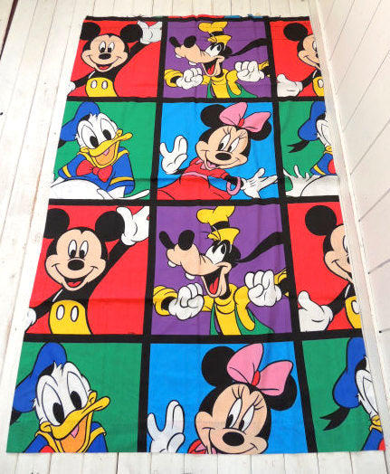 【ミッキー&フレンズ】ディズニー・パネル柄・大柄プリント・ヴィンテージ・カーテン・生地