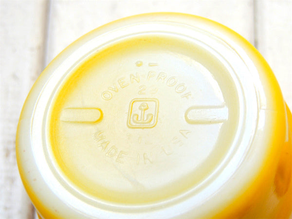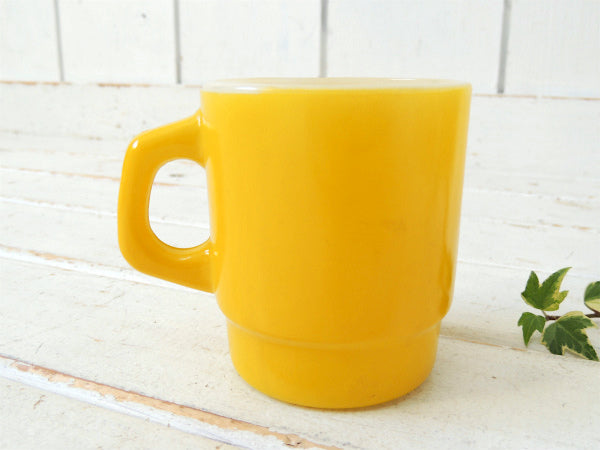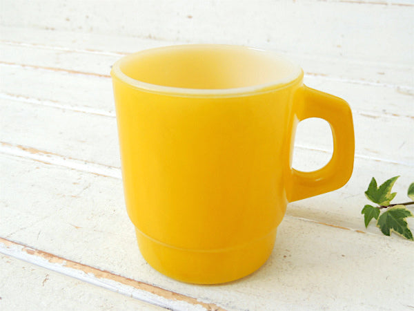 【FireKing】ファイヤーキング・イエロー色・スタッキング・マグカップ・Dハンドル USA