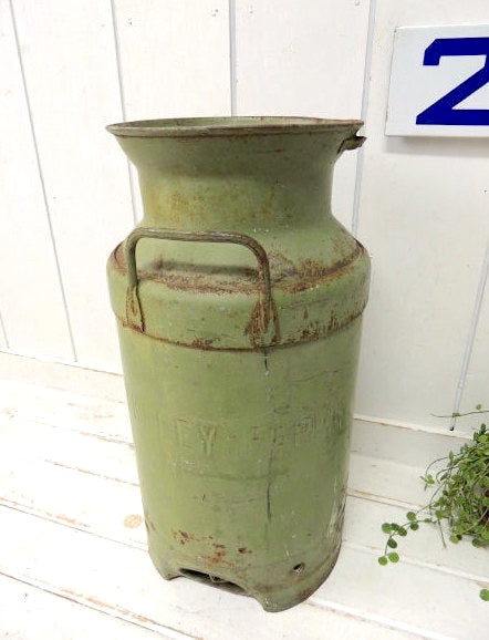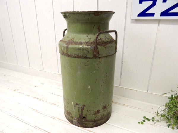 【BERKELEY FARMS】シャビー・若草色・アイアン製・アンティーク・ミルク缶・ミルク容器