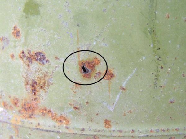 経年により多少のヨゴレ・所々にサビ・スリキズ・側面1箇所に小さな穴がございます。